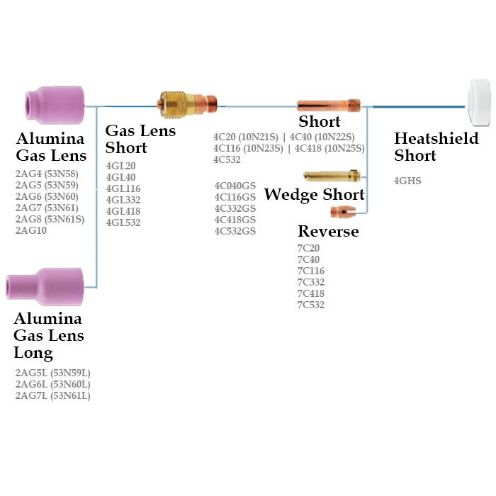 Can be used with Stubby Torch Model Consumables with Gas Lens Setup.