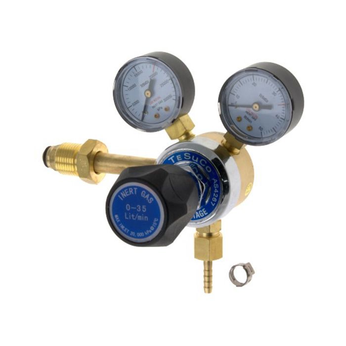The Tesuco argon shielding gas regulator caters for side cylinder valves, have a flow gauge style.