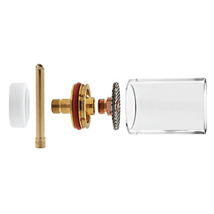 Kit Includes: Heatshield, Collet, Collet Body, Tungsten Adapter Screen, and Glass Cup