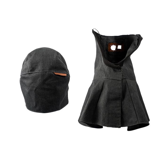 Includes the large head fabric head cover and flame-resistant protective shroud.