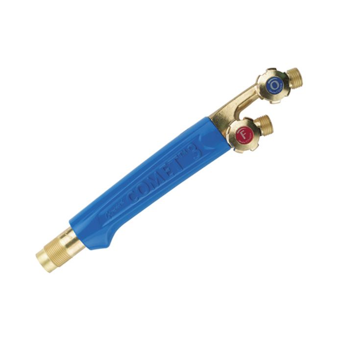 The COMET 3 blowpipe, when used with appropriate attachments, is suitable for fusion welding, braze welding, brazing, soldering, heating, hand cutting, sheet metal cutting, rivet cutting, powder facing and flame cleaning.