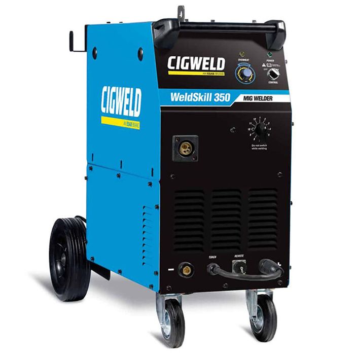 This constant voltage power source is rated to 350 amps @ 30% duty cycle and provides excellent arc performance with solid and flux coated welding wires.